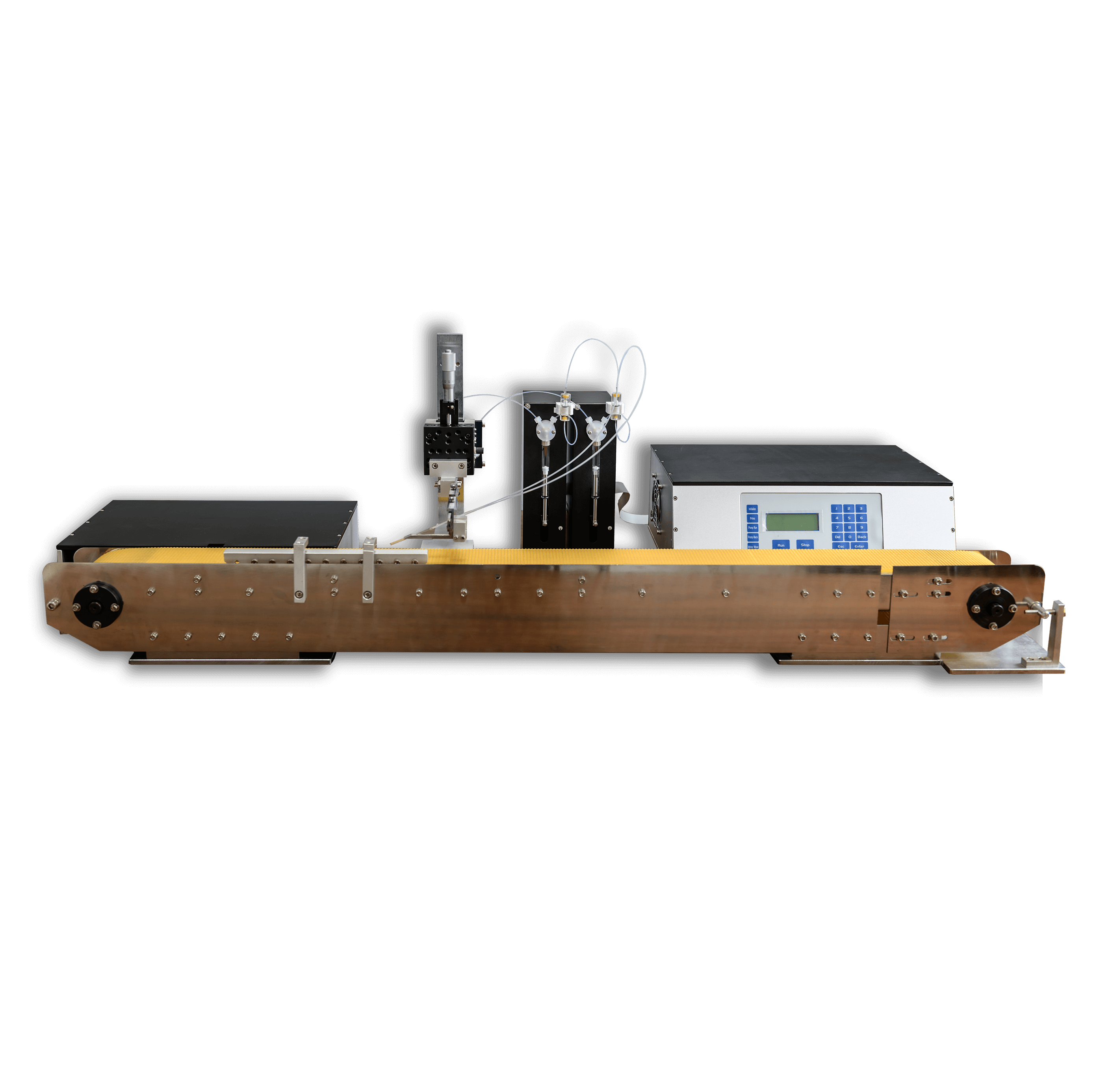 The machine can dispense reagents, on the NC membrane surface. High efficiency for producing lateral flow strip. Control one line need one pumps.