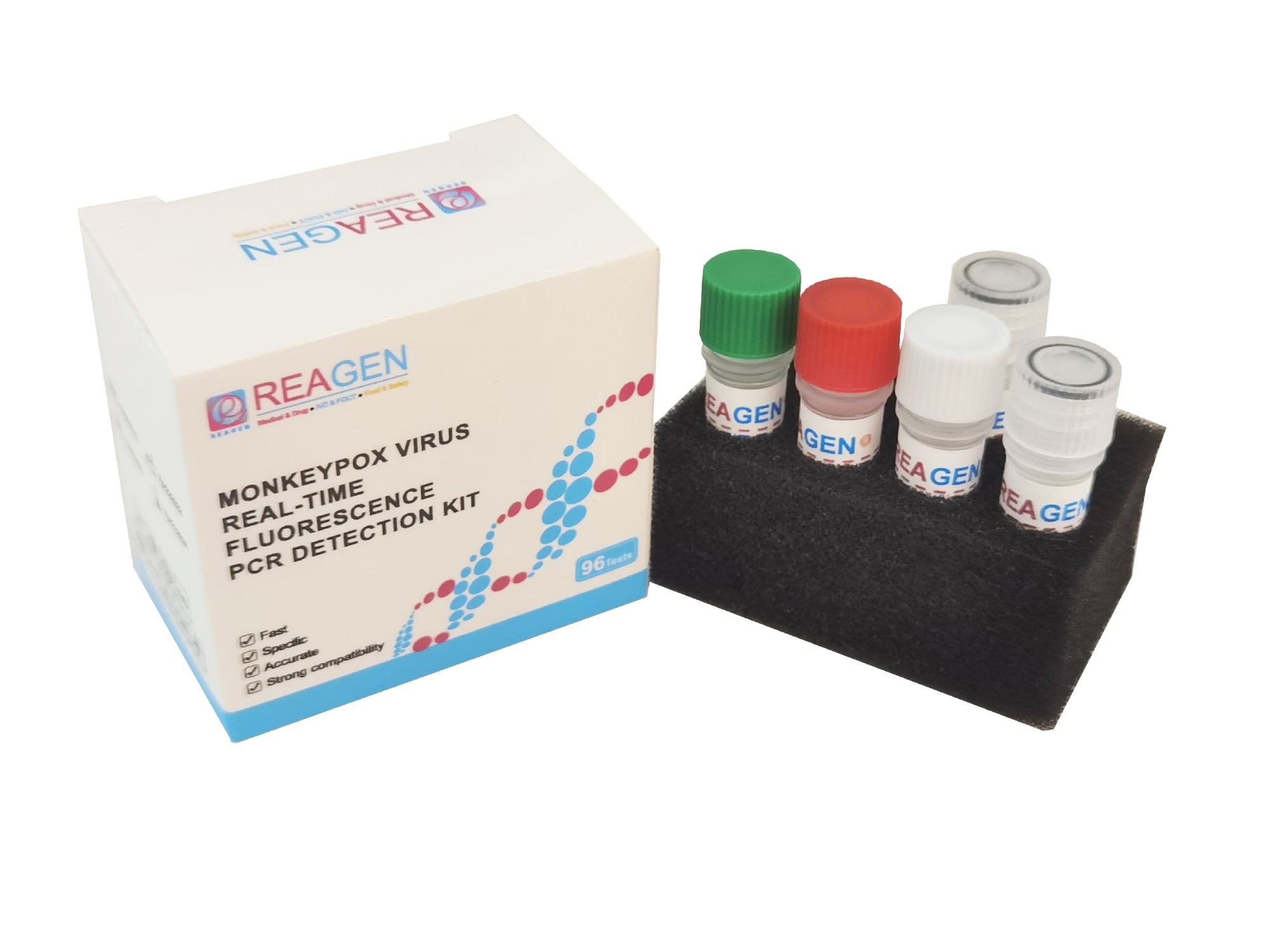 This kit uses polymerase chain reaction combined withTaqman technology to perform fluorescence PCR detection of specific DNA nucleic acid fragments of monkeypox virus.